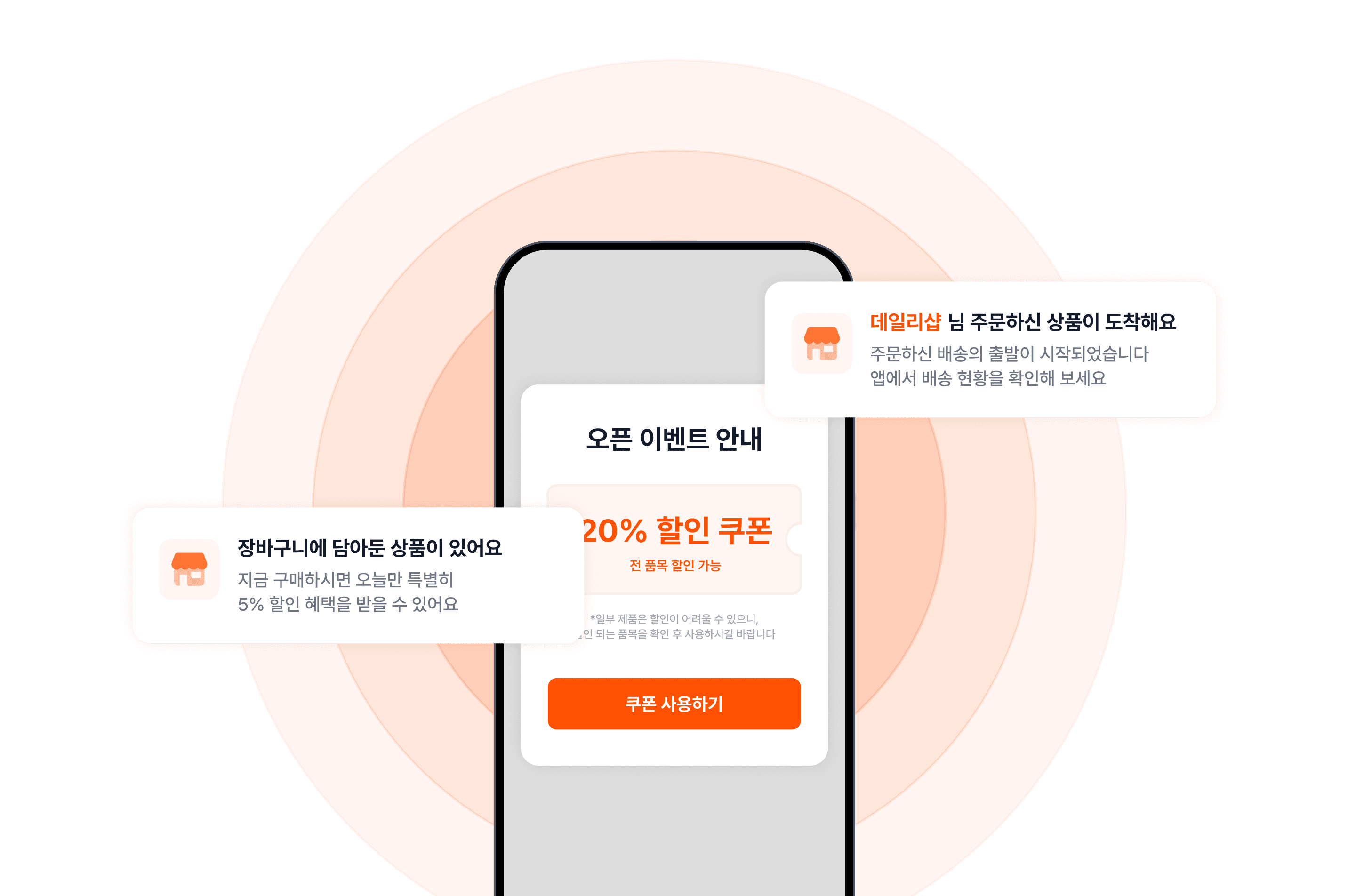 앱을 사용하지 않는 순간에도 고객에게 닿습니다. 재방문, 재구매를 유도하는 가장 직접적인 마케팅 도구입니다