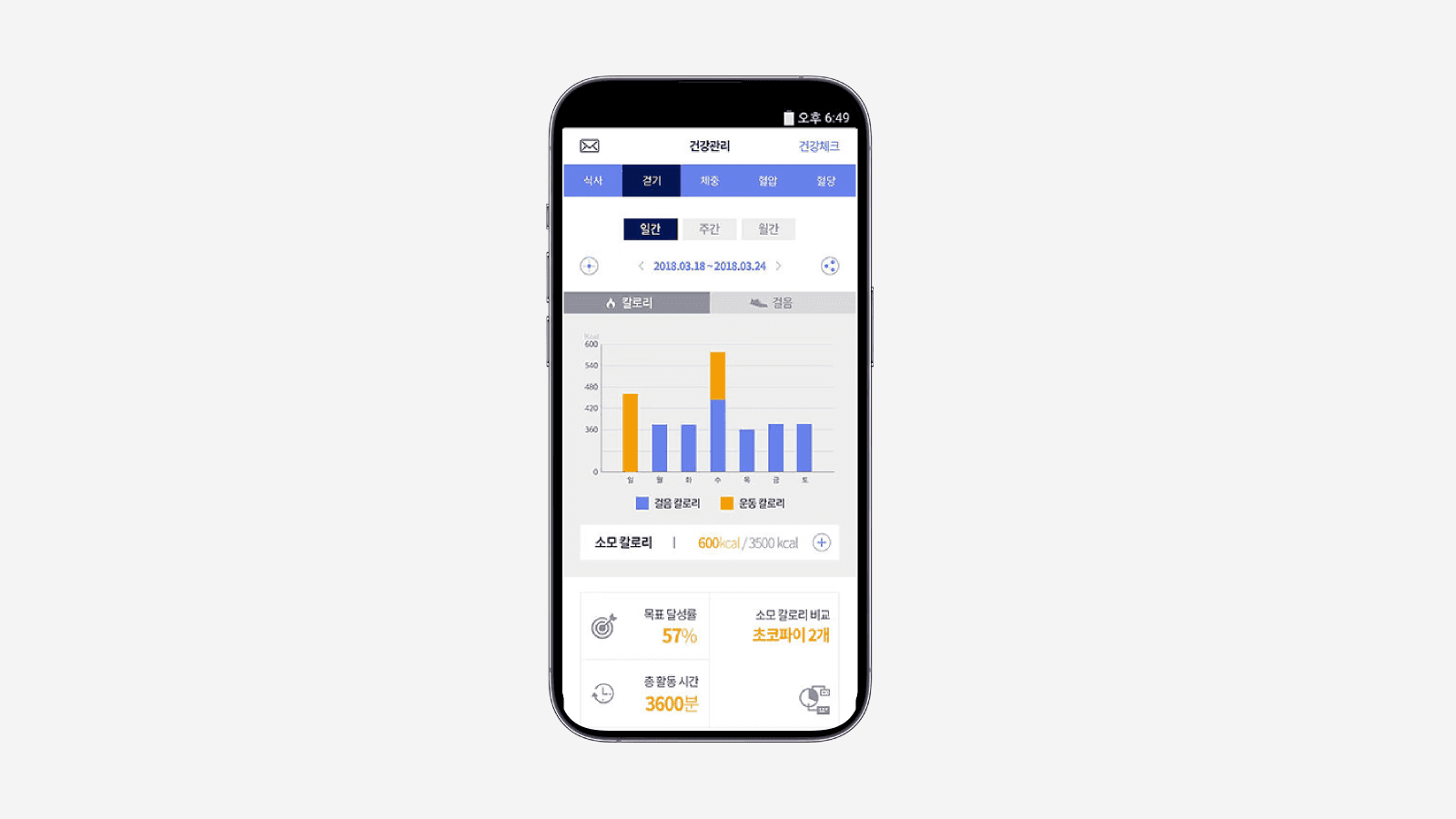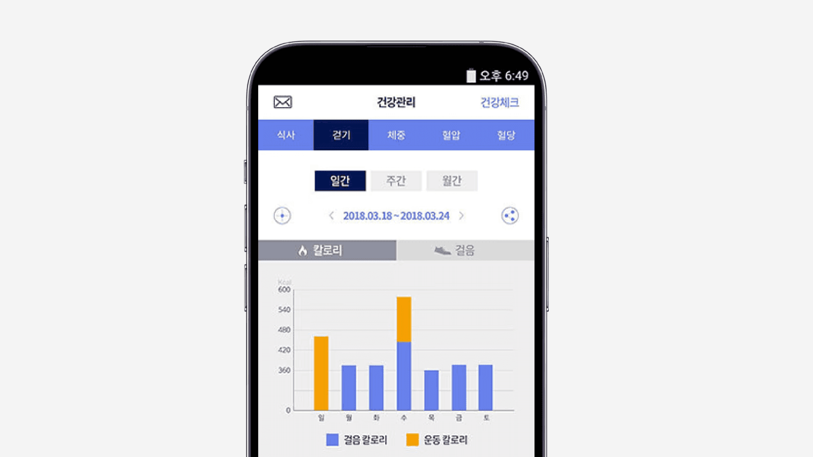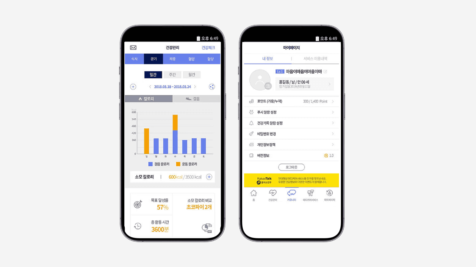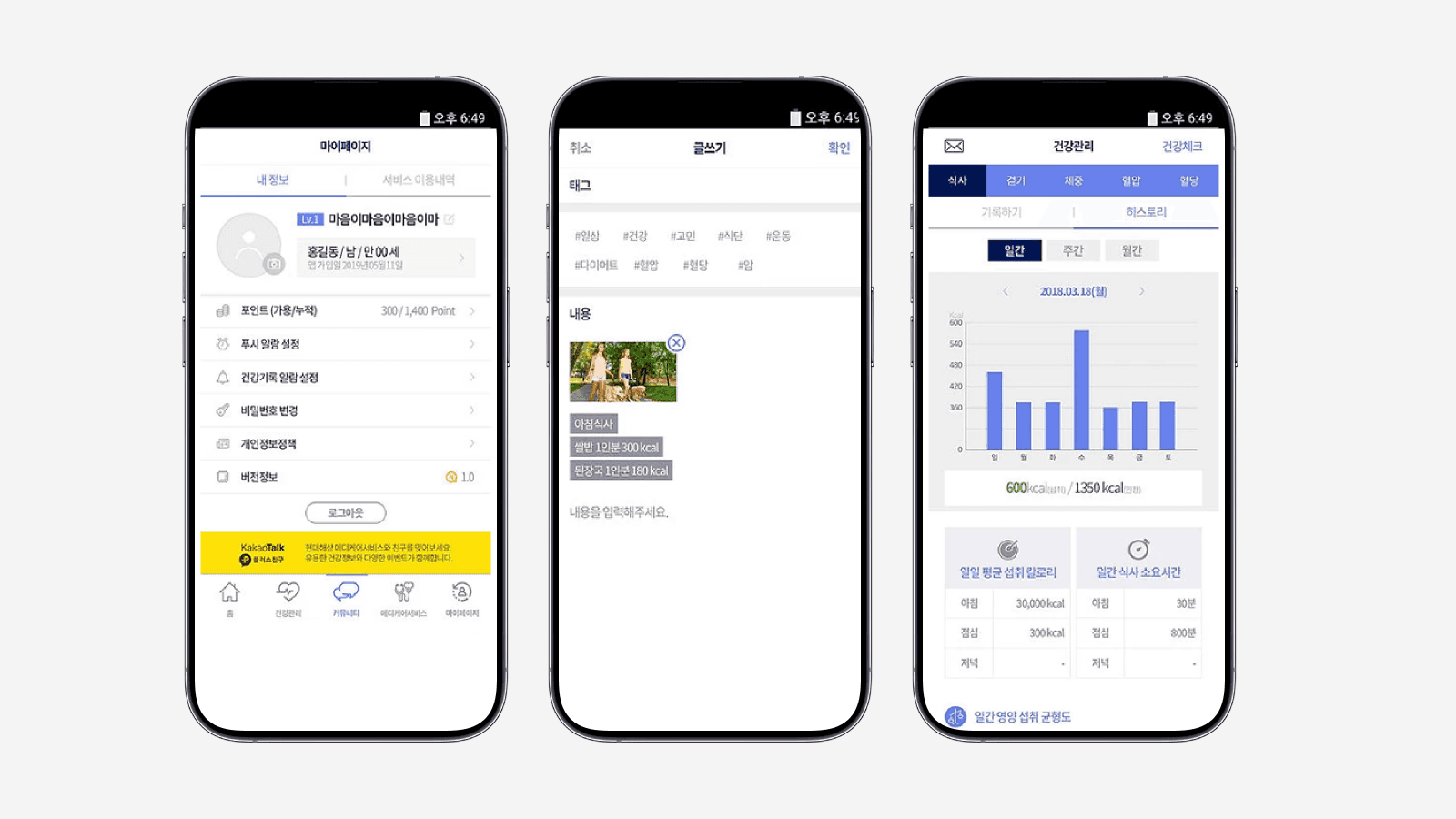 건강 데이터(걷기, 체중, 혈압, 혈당, 식사 등)를 기록 및 관리