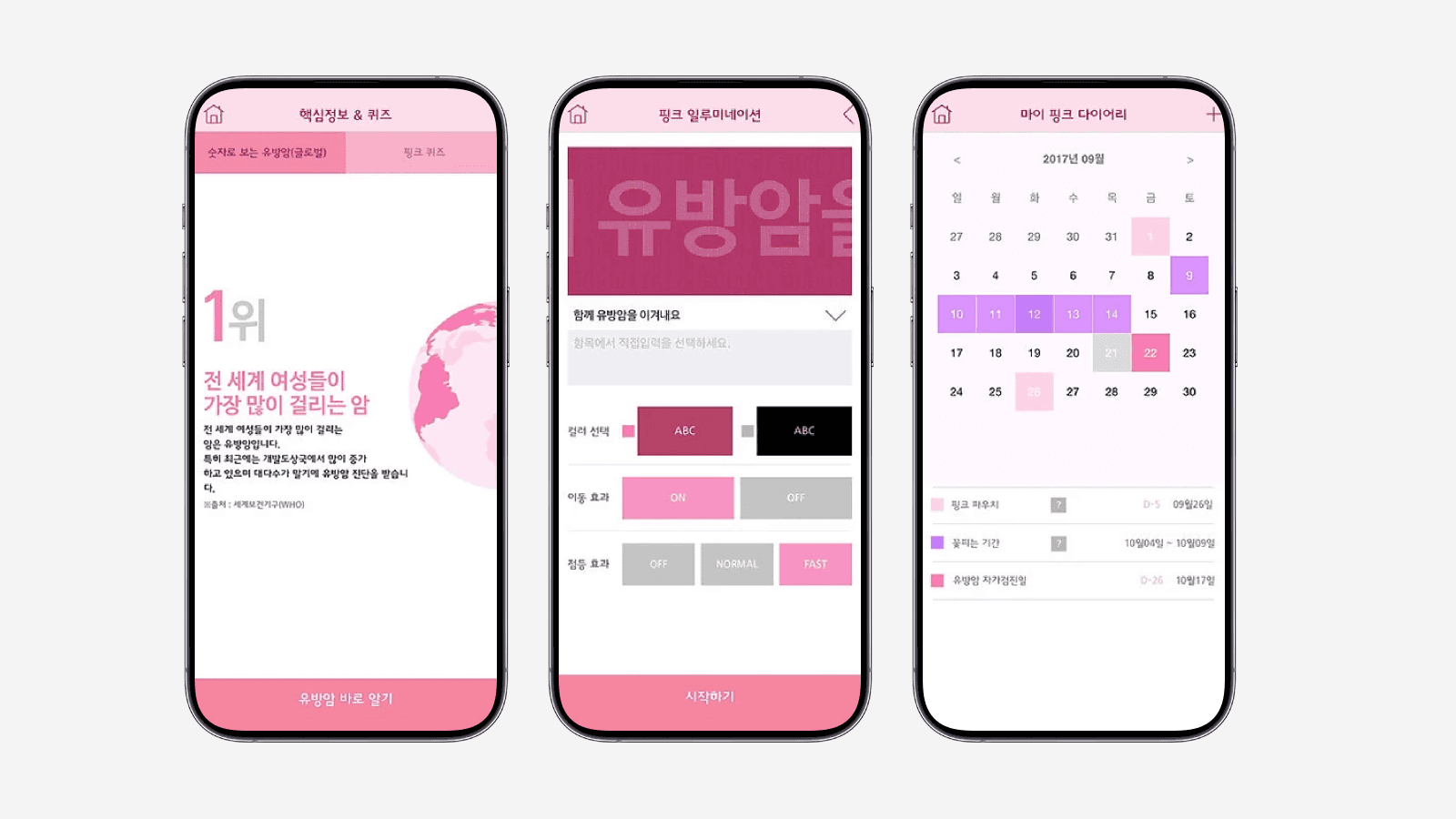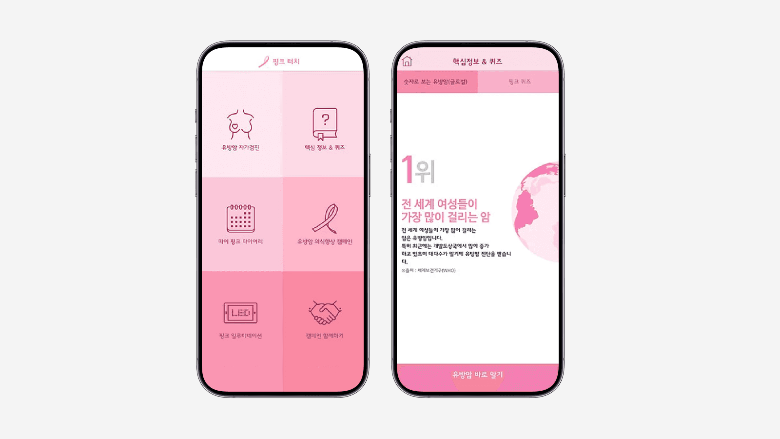 유방암 캠페인과 연계된 건강·자가검진 앱